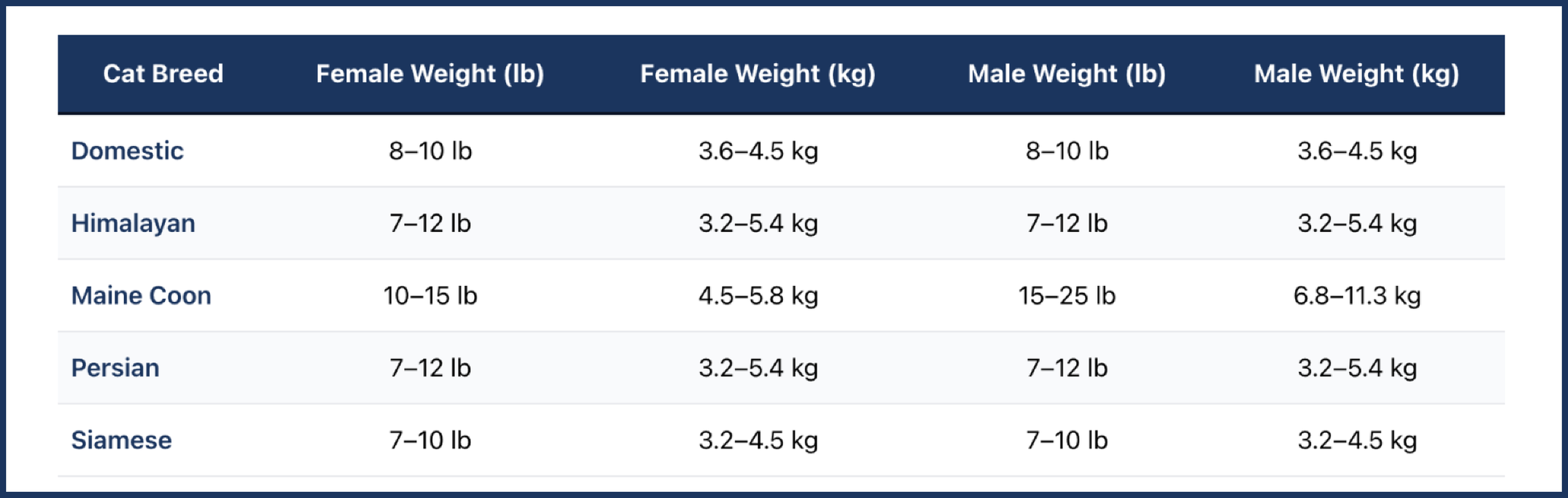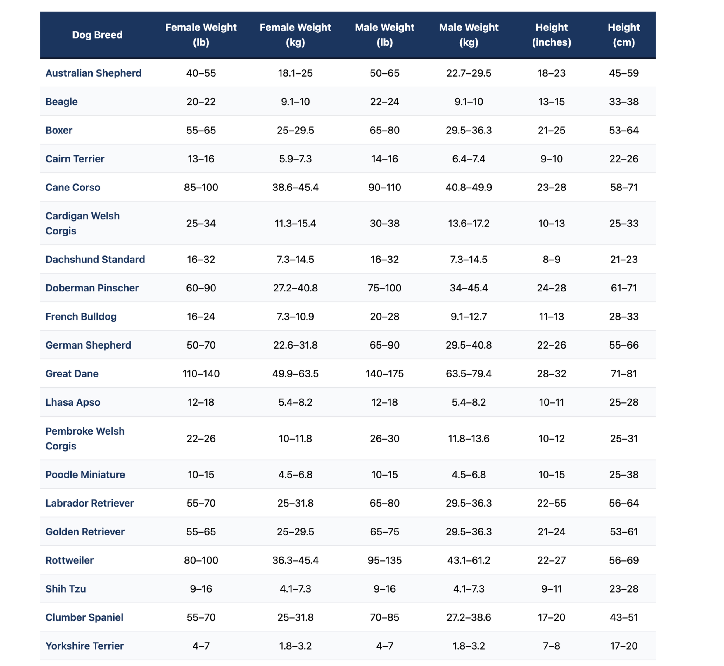 Wondering if your dog or cat is in the usual weight range for their breed? Enter their details in the Dog & Cat Weight Range Calculator to find out. Always talk to your veterinarian for a full body condition and health check.