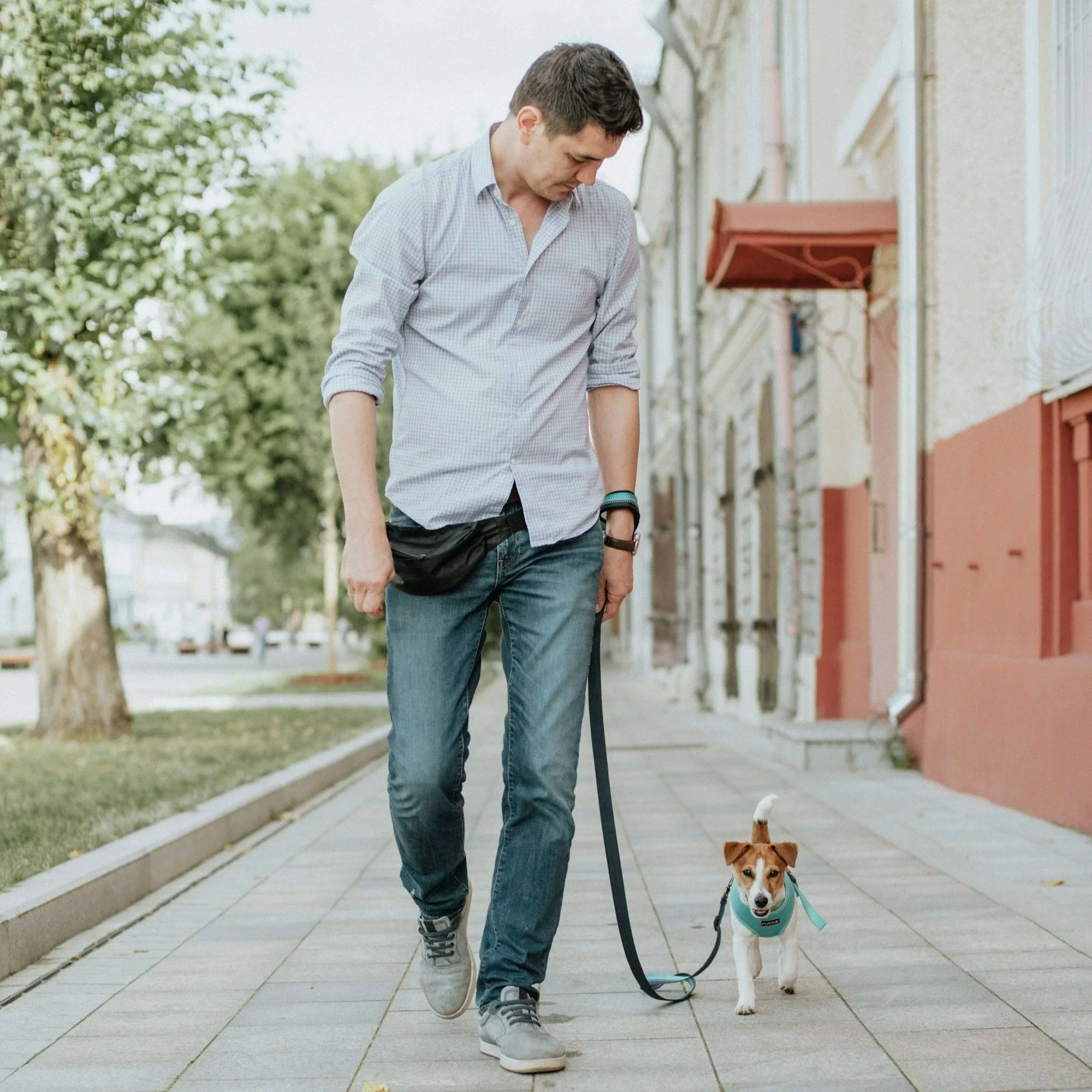 - Keep the leash to 3-6 feet or shorter to maintain control and a steady walking pace.